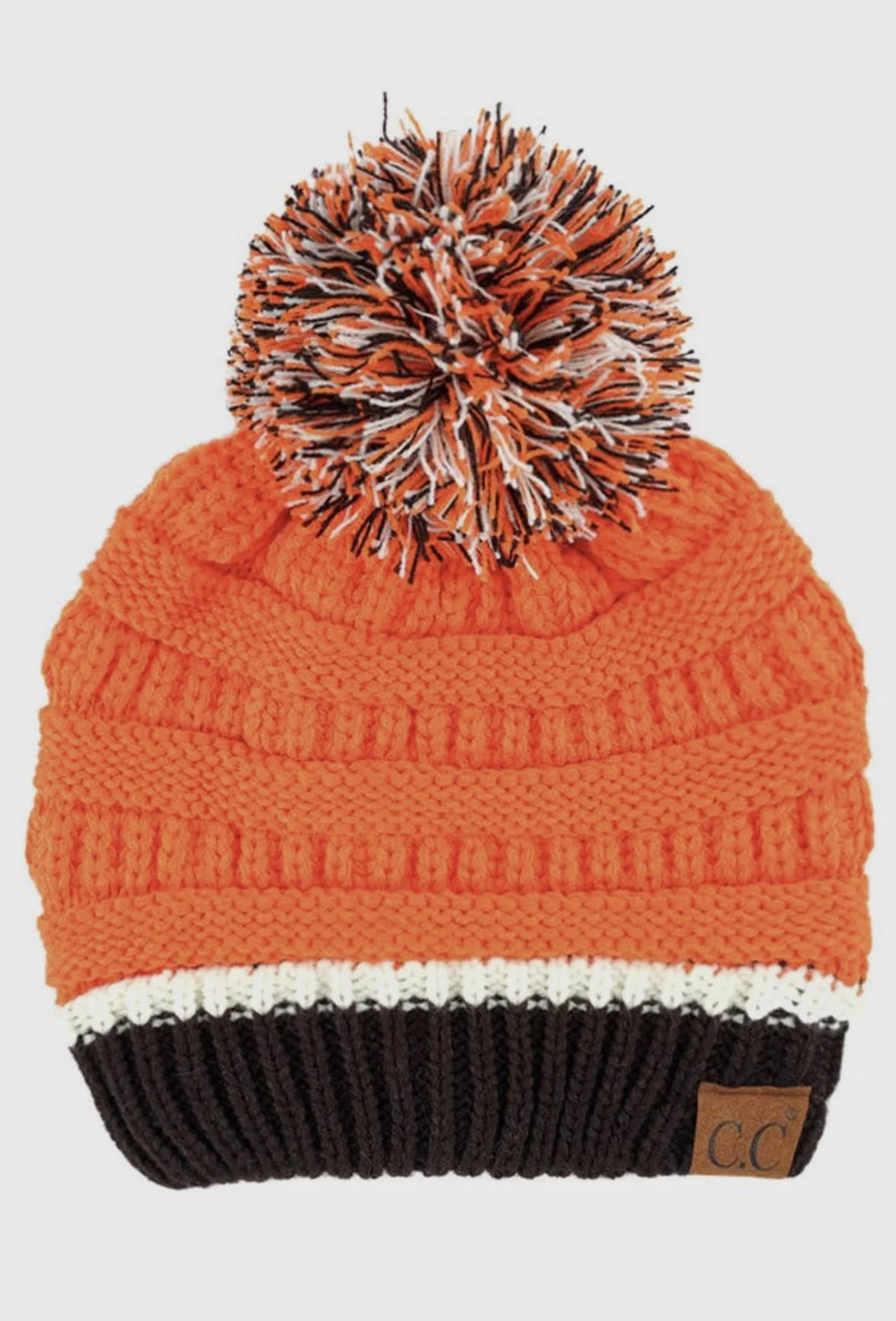 GameDay C.C Sports Color Ribbed Beanie with Pom